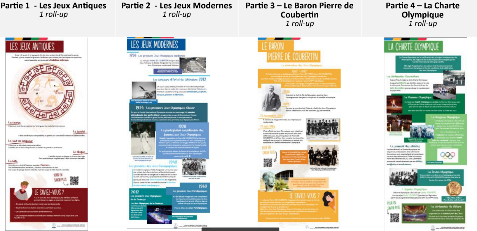 - 29 panneaux sur les éditions des Jeux Olympiques d’été ;